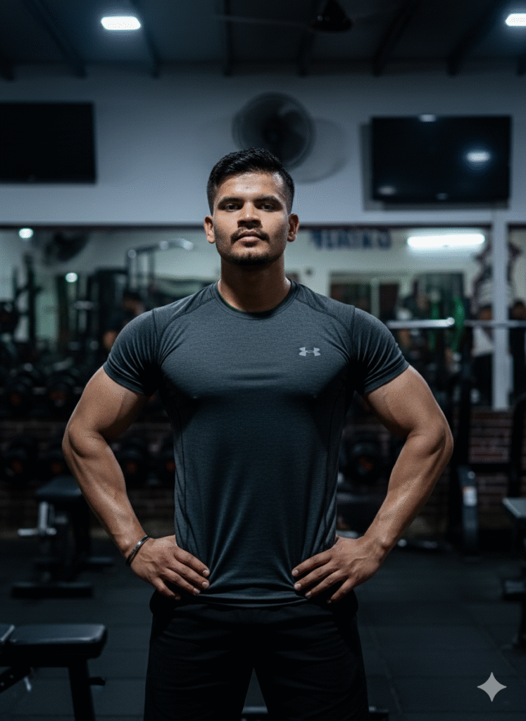 Detail: Perfect for fitness blogs, Instagram, or gym promotions. AI captures anatomy, lighting, and energy, giving the portrait a realistic athletic look.