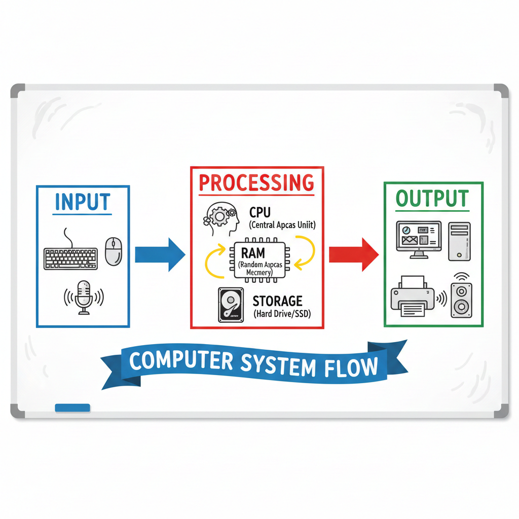 5. Working of a Computer System (Input โ Processing โ Output)