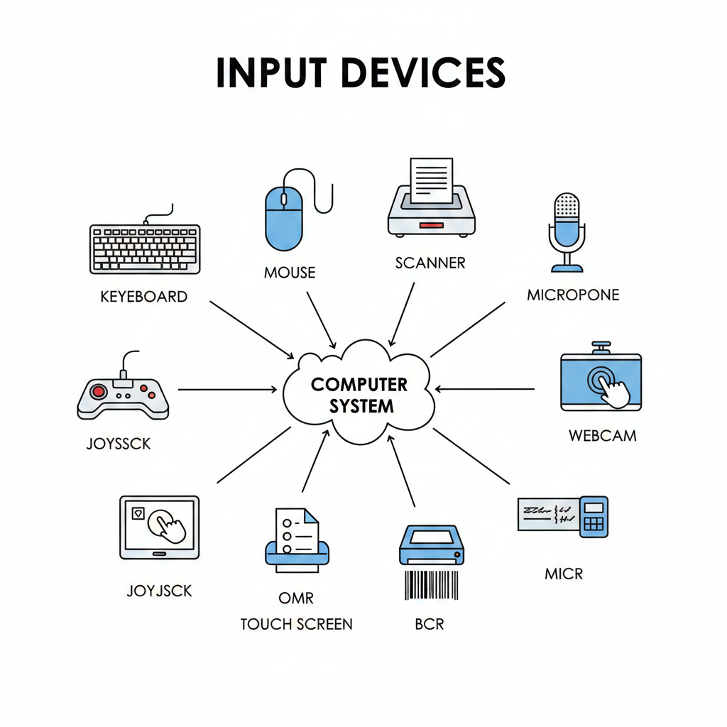 - Mouse โ For pointing, clicking, and selecting items.