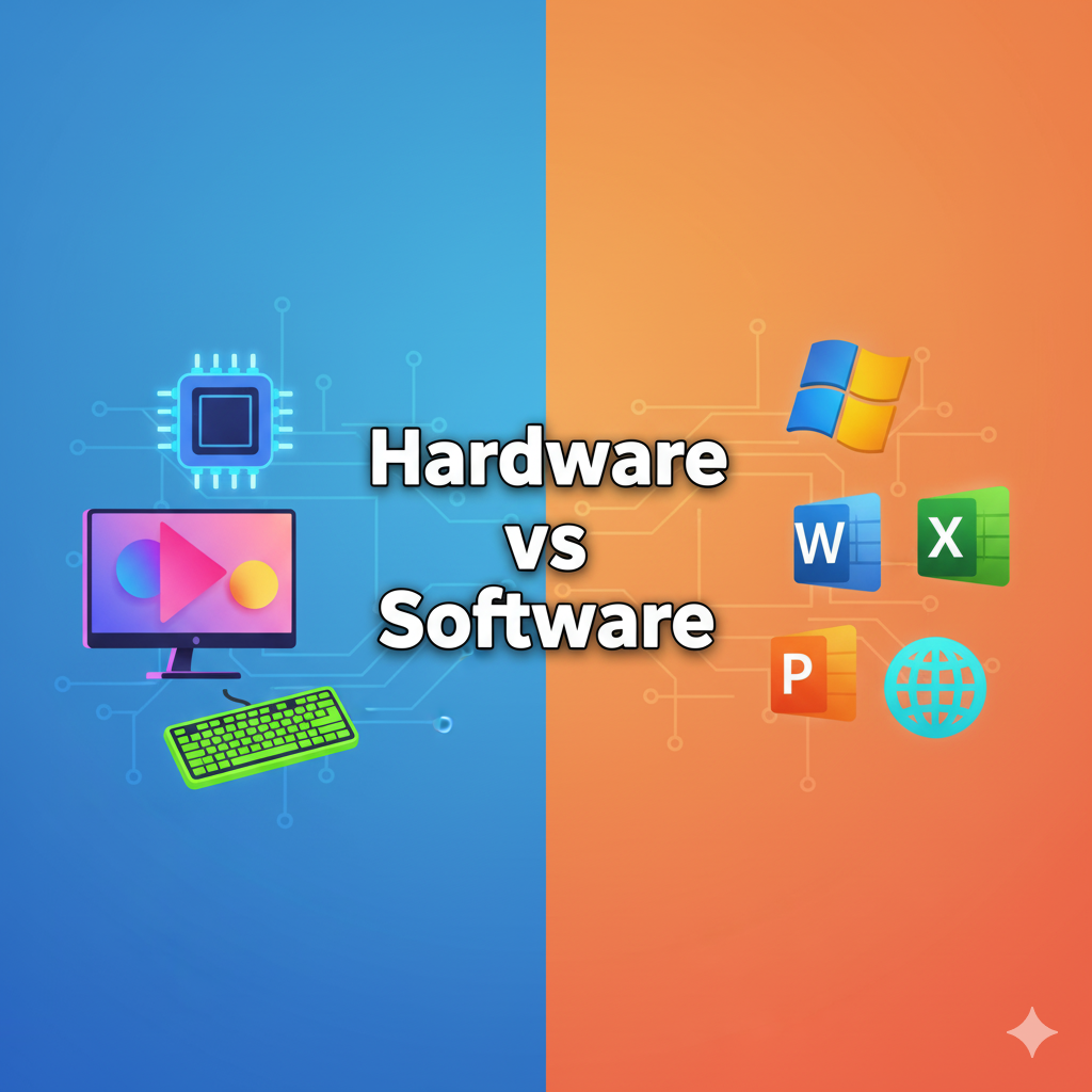 | Examples | CPU, RAM, Keyboard, Monitor, Printer. | Windows OS, Microsoft Office, Web Browsers. |